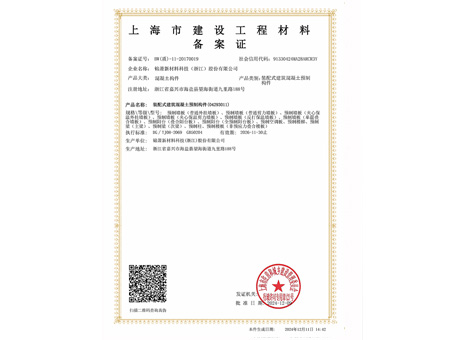 杭州市建筑工業(yè)化產業(yè)基地登記證