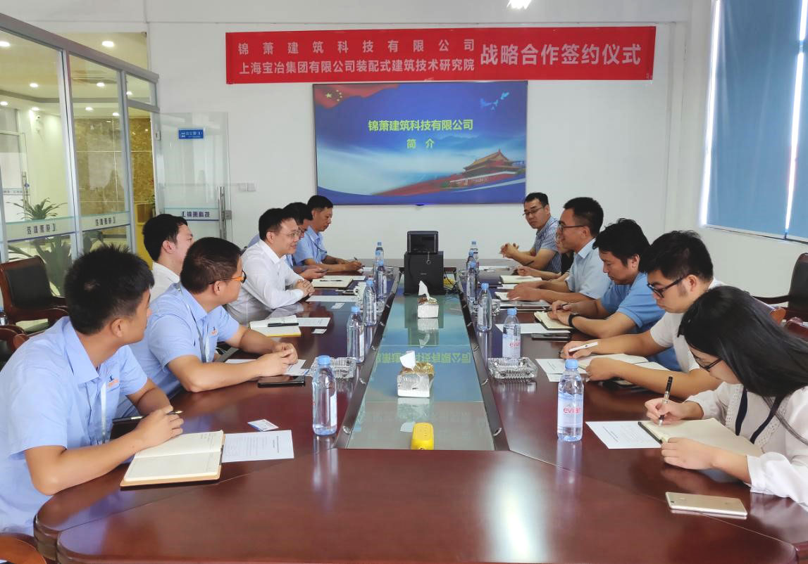2018年8月28日下午,公司與上海寶冶集團(tuán)有限公司裝配式建筑技術(shù)研究院戰(zhàn)略合作簽約儀式順利舉行。寶冶集團(tuán)裝配式建筑技術(shù)研究院首席研究員劉威,錦蕭建筑科技有限公司董事長李軍等雙方人員共同參加了簽約儀式。