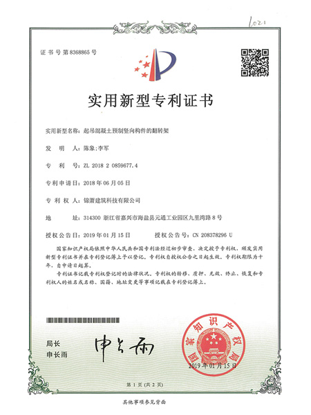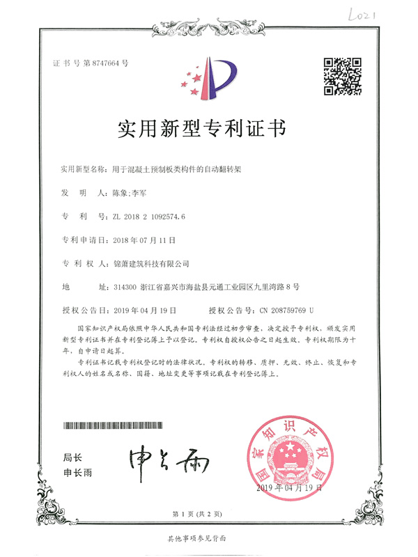 專利證書-自動(dòng)翻轉(zhuǎn)架