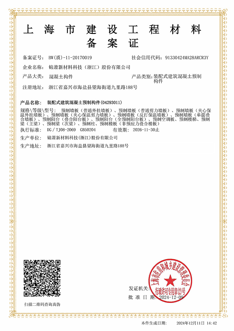 上海市建設(shè)工程材料備案證