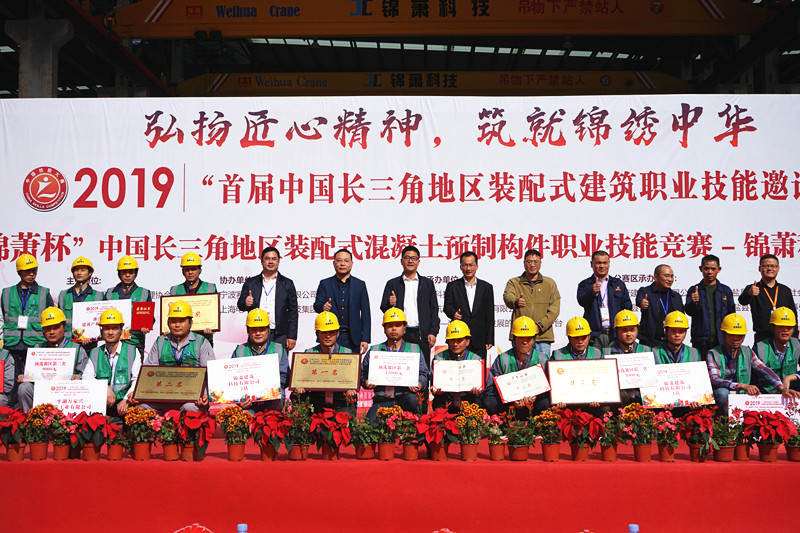 2019年11月16日上午,伴隨著莊嚴(yán)的國(guó)歌聲,首屆 “錦蕭杯”中國(guó)長(zhǎng)三角地區(qū)裝配式混凝土預(yù)制構(gòu)件職業(yè)技能競(jìng)賽-浙江分賽區(qū)預(yù)賽閉幕式在錦蕭科技海鹽裝配式預(yù)制構(gòu)件生產(chǎn)基地順利舉行。