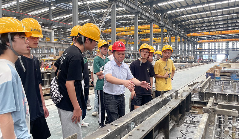 隨后,師生一行在相關(guān)負(fù)責(zé)人的陪同下實地參觀了公司生產(chǎn)車間,現(xiàn)場感受裝配式預(yù)制構(gòu)件的生產(chǎn)工藝和流程,公司技術(shù)人員對學(xué)生們提出的疑惑耐心地進行了一一解答。