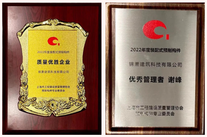 錦蕭科技榮居榜首,被評為“2022年度裝配式預(yù)制構(gòu)件質(zhì)量優(yōu)勝企業(yè)”,并授予公司副總經(jīng)理謝峰“優(yōu)秀管理者”稱號。