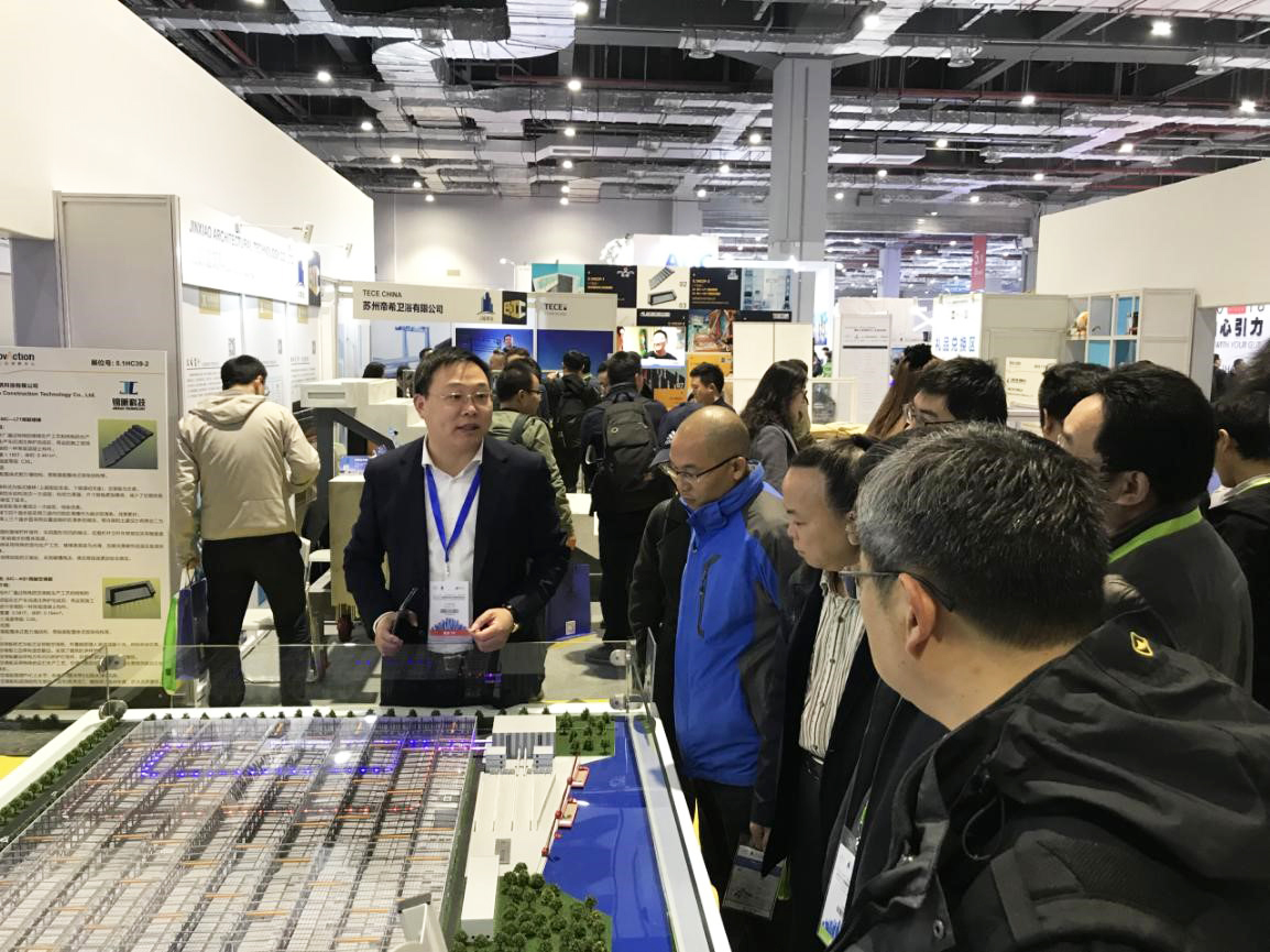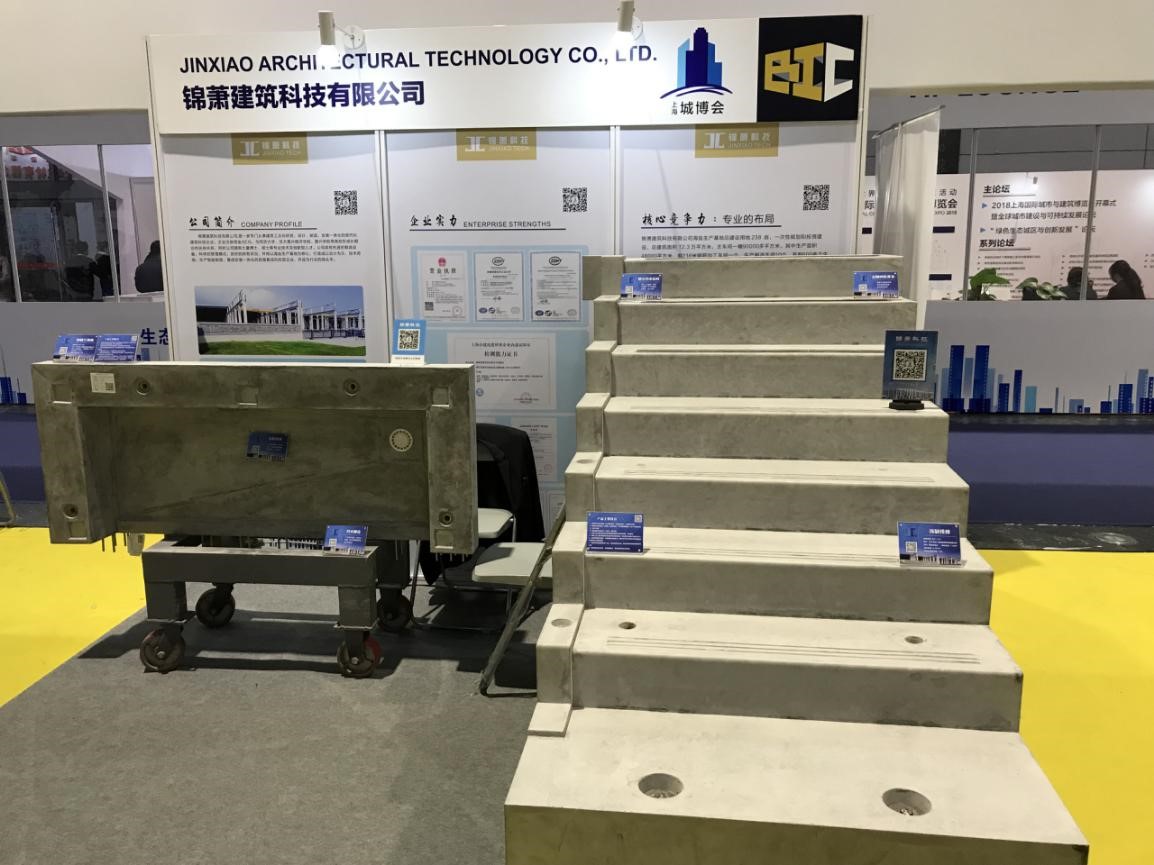 兩次展會(huì),錦蕭科技以最強(qiáng)團(tuán)隊(duì)陣容參與亮相。走進(jìn)錦蕭展區(qū),參觀人氣爆棚,國(guó)內(nèi)外客商絡(luò)繹不絕。公司以混凝土預(yù)制構(gòu)件展品--預(yù)制樓梯、預(yù)制空調(diào)板為媒介,通過(guò)廠區(qū)沙盤(pán)展現(xiàn),背投宣傳片展映,向所有參觀的領(lǐng)導(dǎo)和觀眾展示了公司在裝配式建筑領(lǐng)域所擁有的技術(shù)實(shí)力及強(qiáng)悍的生產(chǎn)能力。