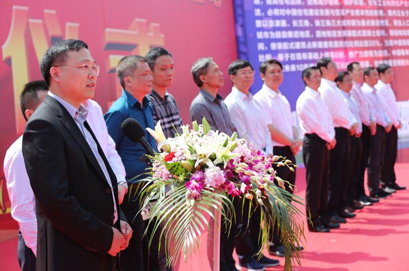 錦蕭科技董事長李軍介紹投資興建"年產(chǎn)70萬立方米建筑裝配式預制構件生產(chǎn)建設項目"是積極響應國家發(fā)展綠色建筑業(yè)的號召,項目總投資為8.05億元,新征建設用地152601平方米,工廠生產(chǎn)及配套用房建筑面積8.8萬平方米,擁有10個車間,成品堆場面積為8.34萬平方米,并配備運輸碼頭一座,建成后年產(chǎn)量最大達70萬立方米,將成為目前國內單個最大的裝配式PC構件生產(chǎn)基地,產(chǎn)品會覆蓋上海、蘇州、嘉興、杭州、紹興、寧波等長三角地區(qū),并對前來參加奠基儀式的各位領導和各界朋友表示衷心感謝,作了歡迎詞。