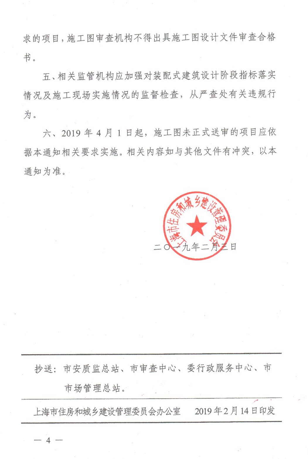 六、2019年4月1日起,施工圖未正式送審的項目應(yīng)依據(jù)本通知相關(guān)要求實施。相關(guān)內(nèi)容如與其他文件有沖突,以本通知為準(zhǔn)。