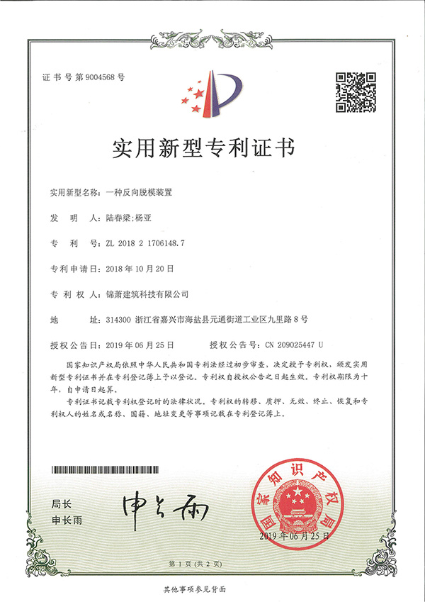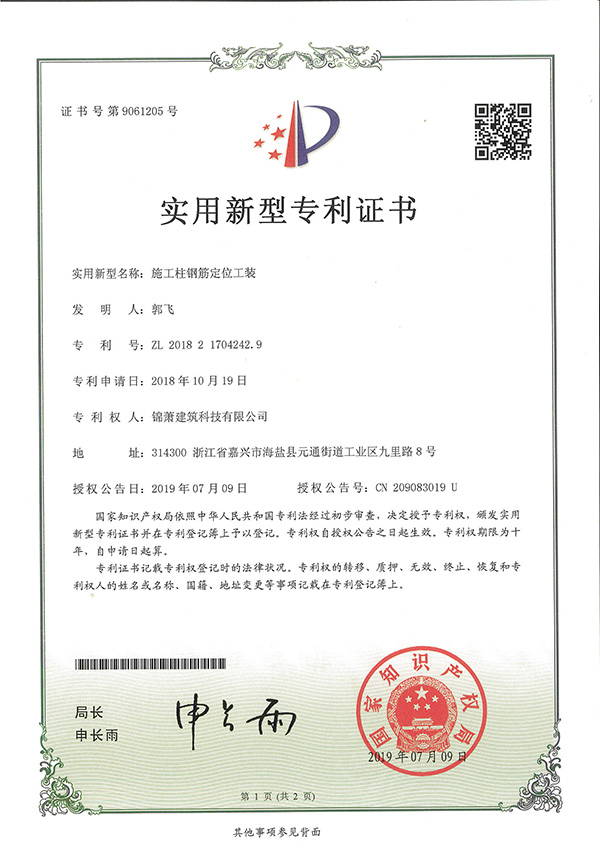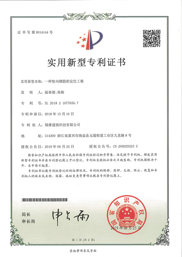 專利證書(shū)-一種豎向鋼筋的定位工裝