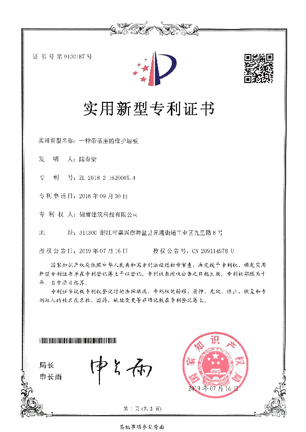 專利證書(shū)-一種帶基座的維護(hù)墻板