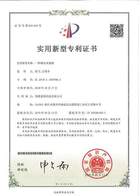 專利證書--一種模具夾緊器